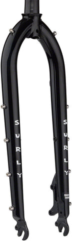 The Cocktail Fork is non-suspension corrected and ready to dig into whatever’s served up. We gave it two 4-pack bottle mounts and the ability to run fenders alongside an 8 or 24-Pack style rack, for all your necessary post-ride accoutrements. The Surly Cocktail fork features 100% Surly Chromoly steel construction, 51mm IS disc brake mounts, and clearance for tires up to 27.5 x 2.8” or 700c x 47 without fenders.